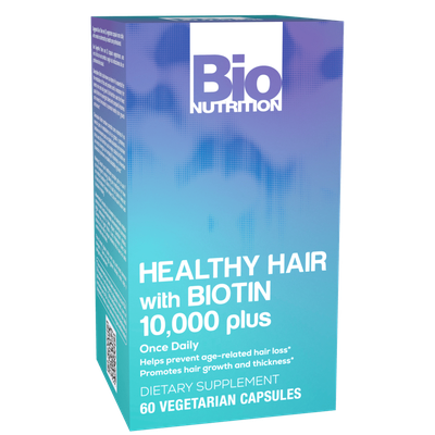 Biotin, also known as vitamin H is essential for the metabolism of fats and proteins and is necessary for healthy hair and nail growth. Bio Nutrition uses the finest quality Biotin in a synergistic blend with complex B vitamins and minerals formulated to promote healthy hair growth and texture.*